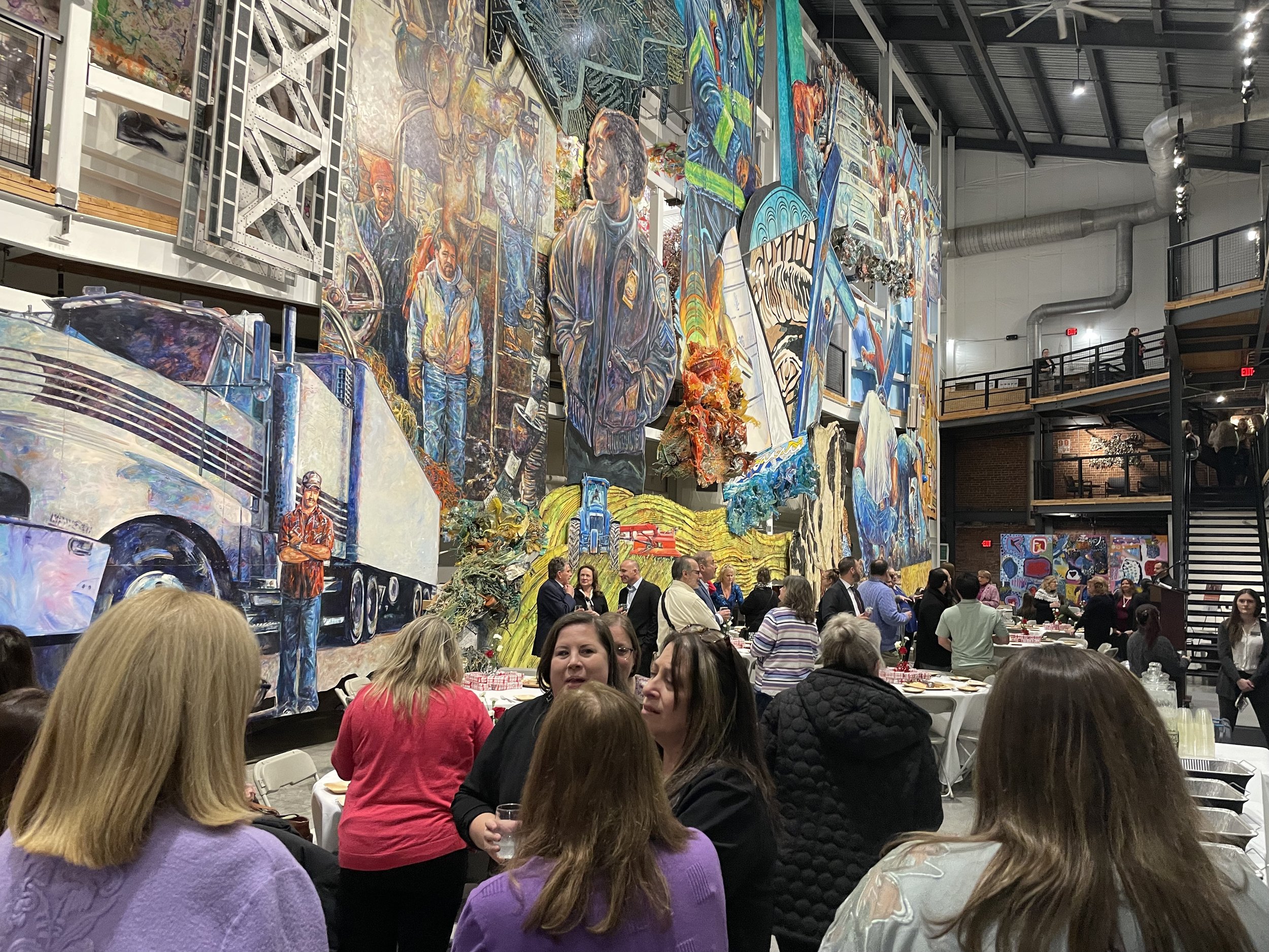 Celebrate Your Workforce is a private family program at the American Mural Project designed to recognize your employees while sparking curiosity and ambition in the next generation. Surrounded by a monumental tribute to workers, families engage in art, conversation, and shared discovery—creating a deeper understanding of contribution and purpose.