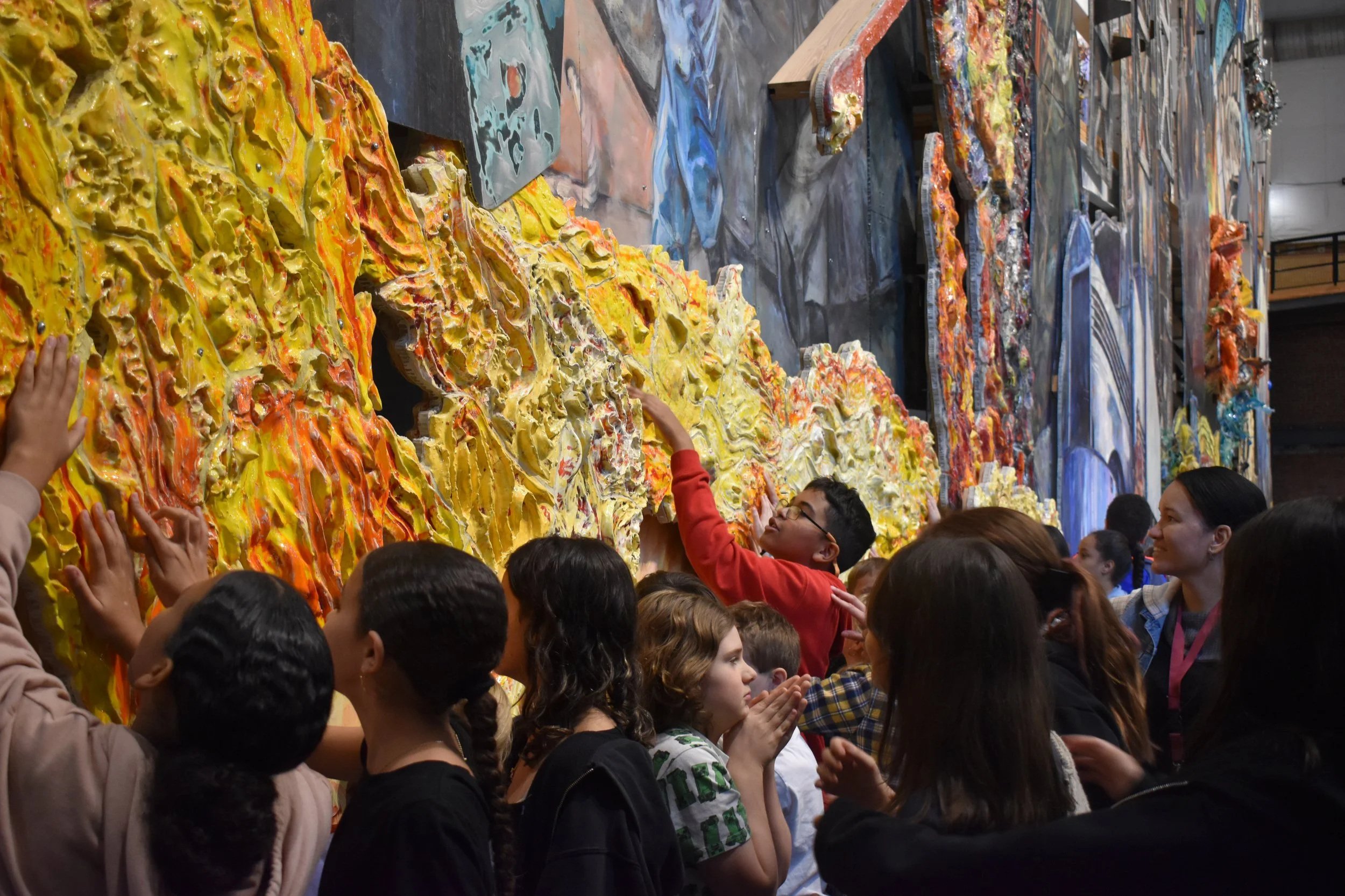 Your school field trip includes an interactive art activity. Using the mural as their springboard for discussion and creative responses, students develop their own interpretations and insights, guided by AMP education staff.