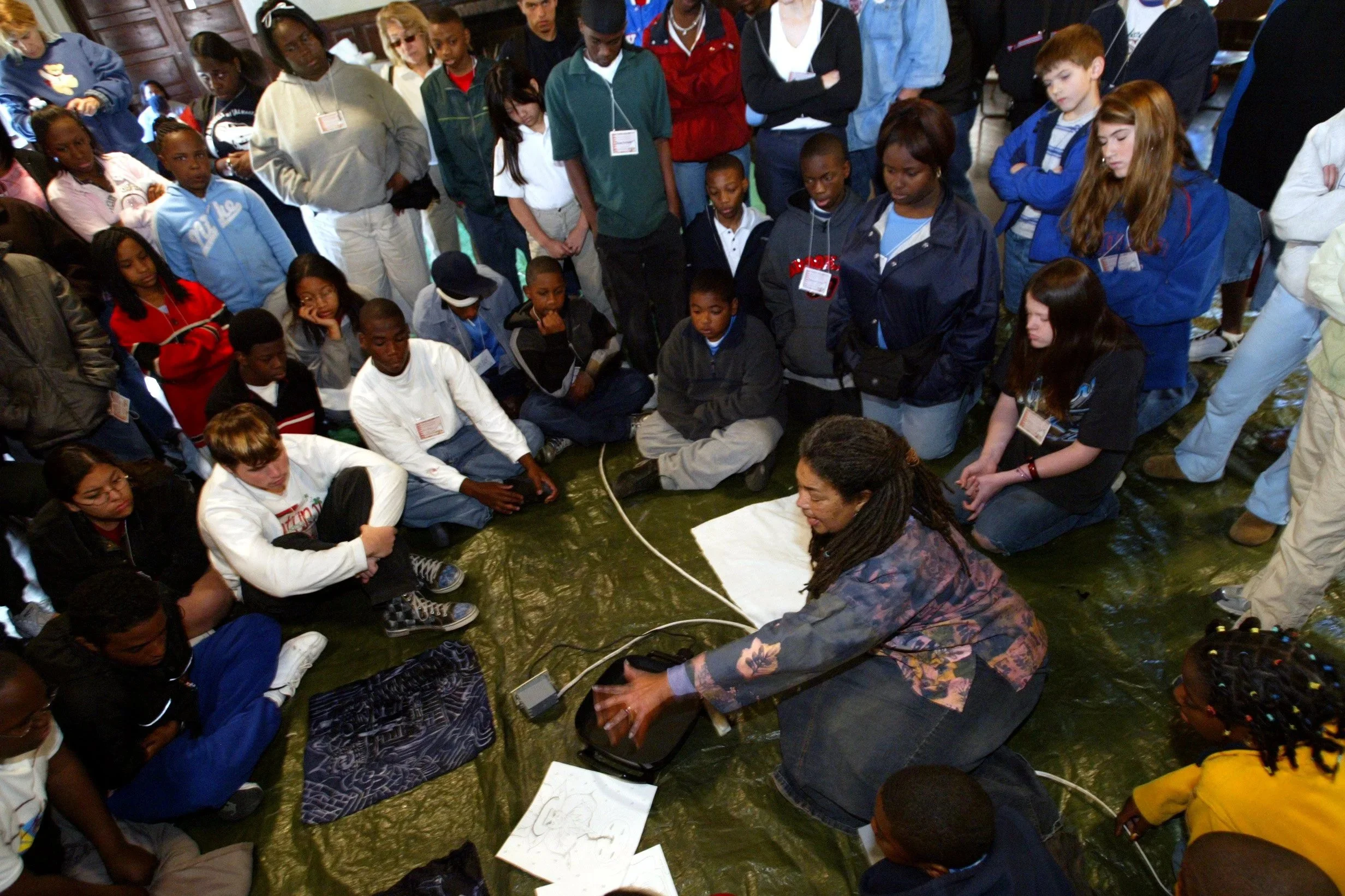 Students discover how the mural came to be the largest indoor collaborative artwork in the world, involving more than 15,000 people across the country.