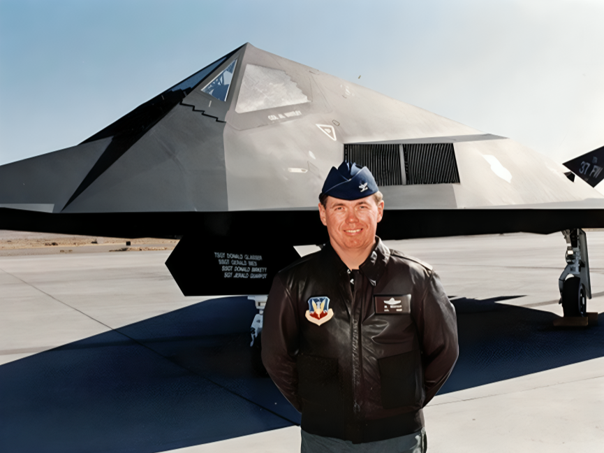 As she began conceiving her mural, AMP Founder Ellen Griesedieck knew she wanted to include a military worker; she just needed the right subject. After reading about an extraordinary pilot who was the first to test and fly the top-secret Lockheed F-117A Nighthawk, AMP founder Ellen Griesedieck went on her own reconnaissance mission: find Colonel Alton โAlโ Whitley, Jr. Like anyone in the path of Whitleyโs stealth bomber, the U.S. Air Force veteran didnโt know what was about to hit him. When the two met, she knew she found the perfect addition to her vision!